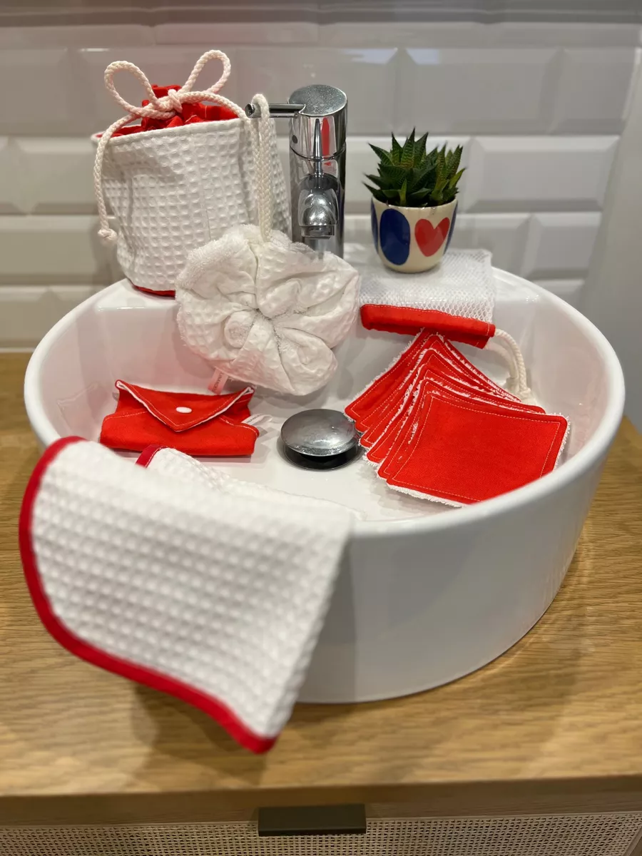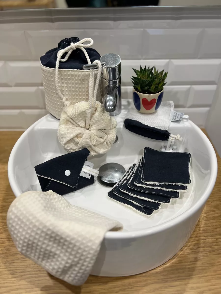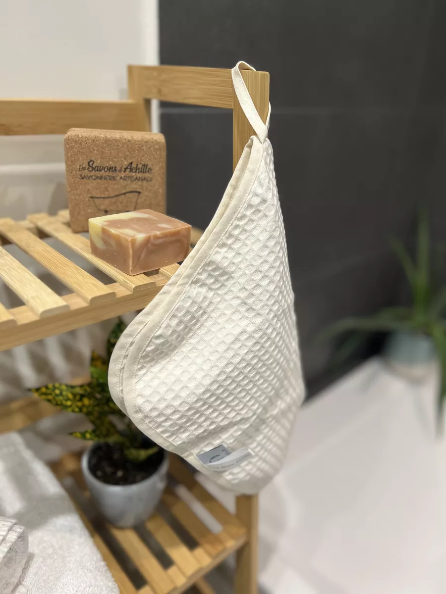 Fruit d'une belle collaboration avec les ateliers normands Linandelle, la serviette visage en tissu nid d'abeille sera parfaite pour sécher votre visage après votre soin.