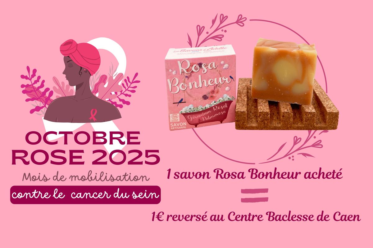 Huile d'olive*, huile de coco*, beurre de karité*, eau, soude, huile de colza*, argile rose, huile essentielle géranium rosat*, huile essnetielle palmarosa*.